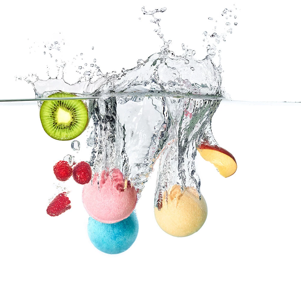 Set of 3, scented, skin-nourishing, fizzing bath bombs.