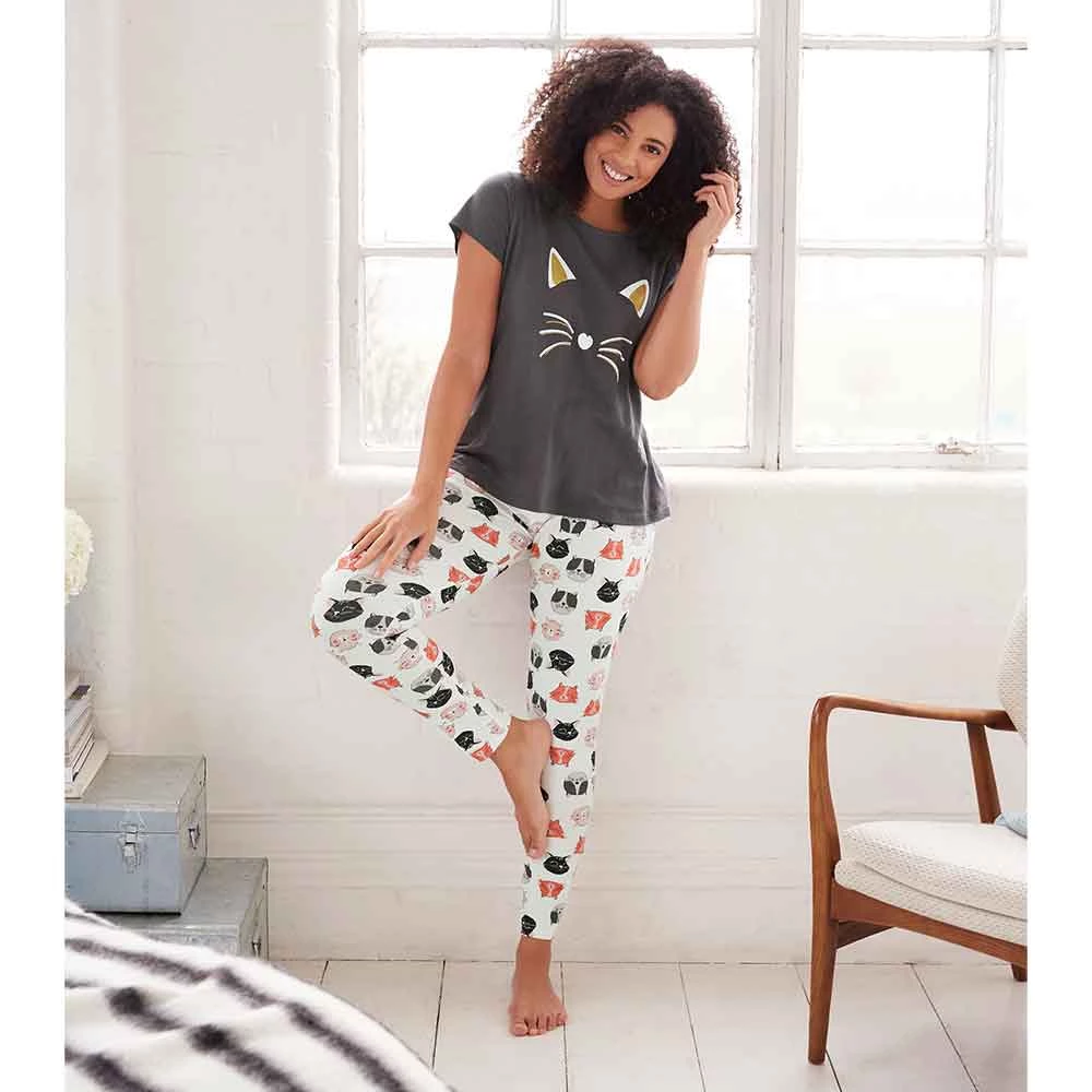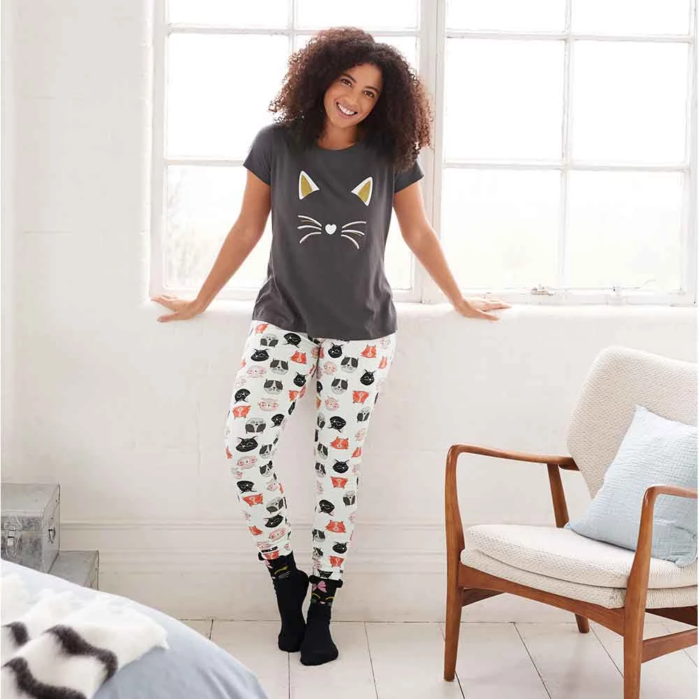 Get the purr-fect night’s sleep and wake up feeling paw-some in our snuggly Cat PJs. The 100% cotton top has a cute cat illustration and gorgeous glitter ear detail, while the bottoms have an all-over cat print. Pull on the matching Cat Socks and cuddle up for a cosy night in.