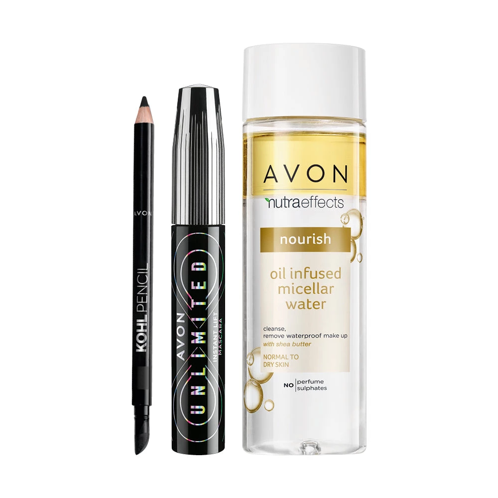 Make panda eyes a thing of the past with 24 hours of smudge-proof, lifted lash volume, waterproof kohl lines and your 1-step make-up remover with nourishing shea butter.