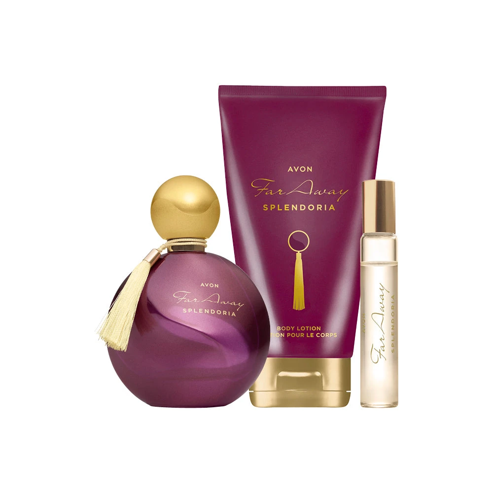 Includes: Far Away Splendoria Eau de Parfum 50ml, Purse Spray 10ml and Body Lotion 150ml.