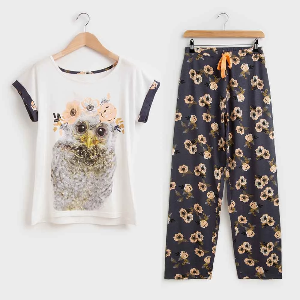 • Adorable owl print detail on t-shirt.