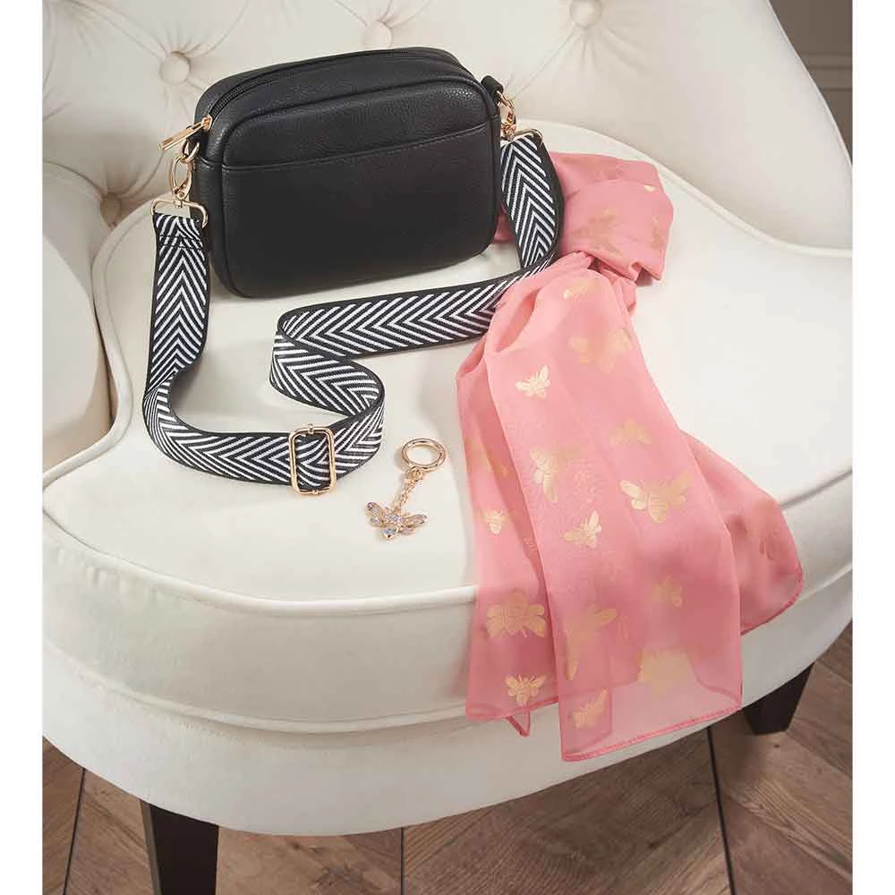 Avon Cosmetics Fashion Hanna Gold Foil Bee Scarf