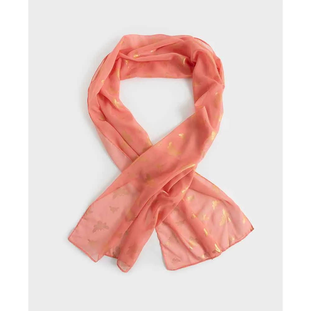 Sporting a buzzing bee print, the charming Hanna Gold Foil Bee Scarf adds a touch of effortless elegance to a springtime outfit with its lightweight feel.