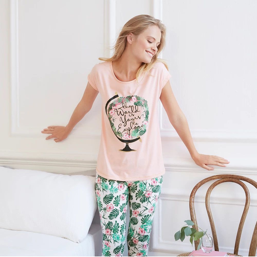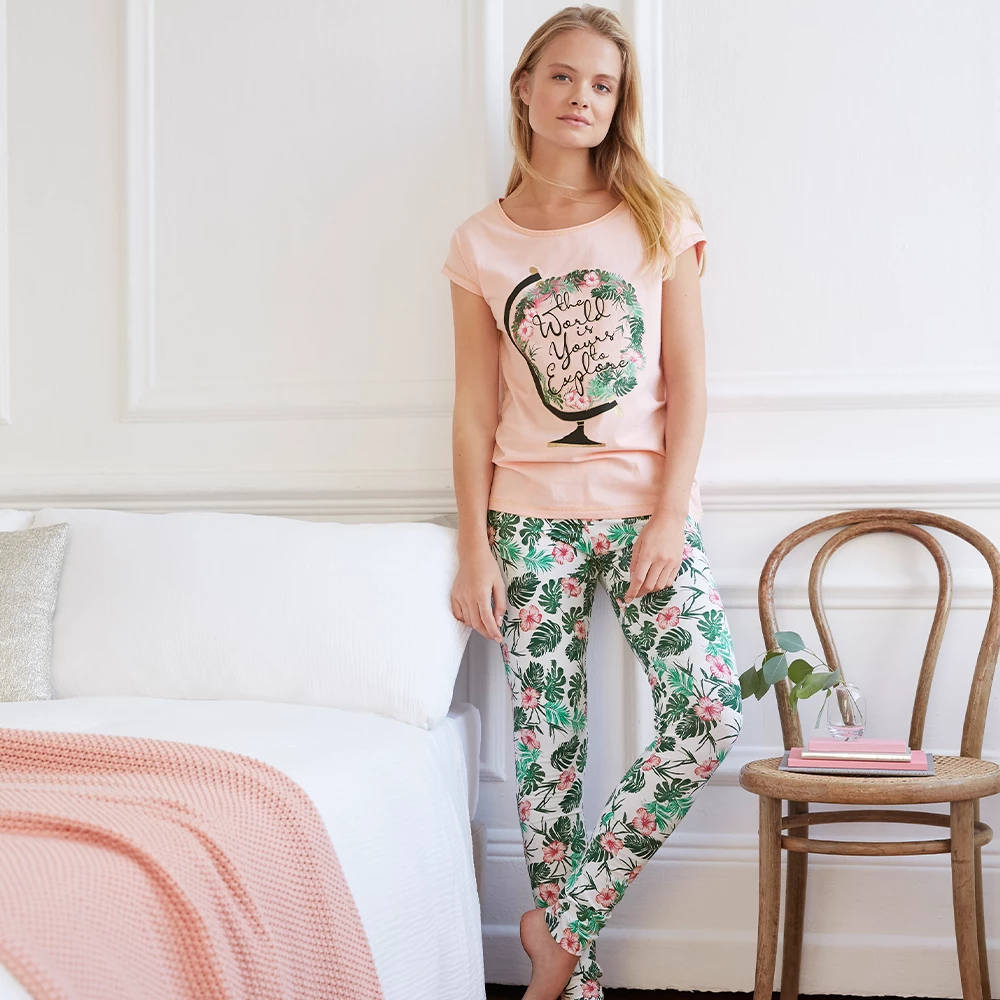 Banish those sleepy eyes and snuggle in for the night with the World Is Yours To Explore PJs. Inspired by our beautiful planet, these PJs feature a stylish blossoming globe illustration design with pretty metallic thread stitching and a super-comfy legging bottoms.