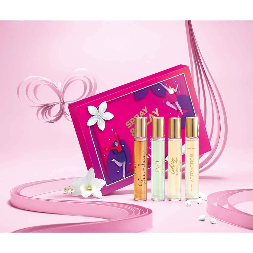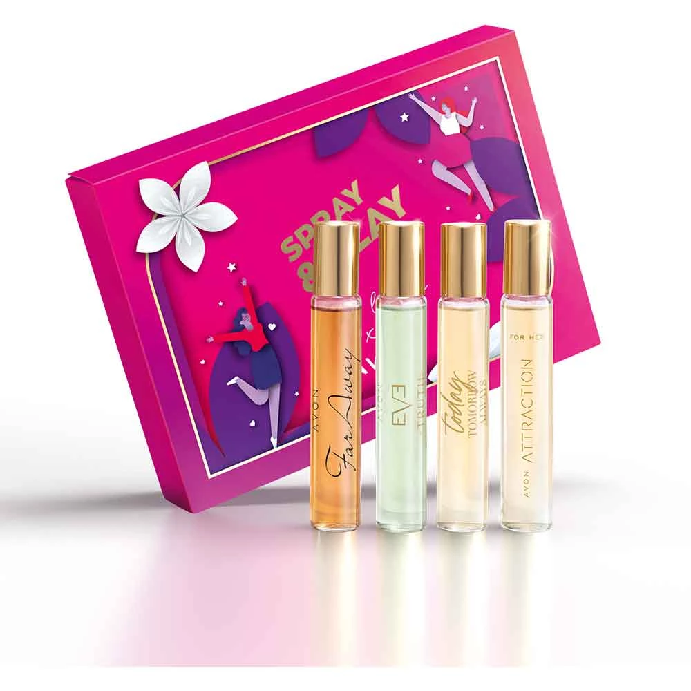 Discover a perfume for every moment in your life with the Fragrance Purse Sprays Gift Set. Featuring 4 bestselling purse sprays with the iconic Far Away, award-winning Eve Truth, floral-favourite Today and the sensual Attraction for Her. It’s the perfect gift for your mum, sister, aunt, friend or even yourself!