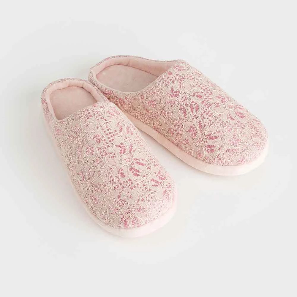 Keep your toes toasty with our Lace Slipper Mules. Featuring delicate lace detail and gorgeous glitter detail, you’ll love wearing them around the house.