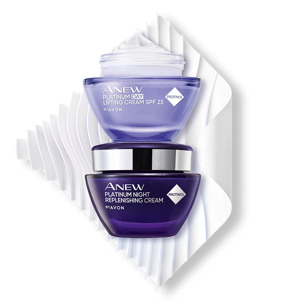 Anew Platinum Day and Night Cream, the skincare duo that deeply replenishes, for firmer-looking, more cushioned skin. These luxurious anti-ageing moisturisers are formulated with patented Paxillium Technology to help restore youthful cell shape and boost collagen to firm, lift and strengthen the look of skin.