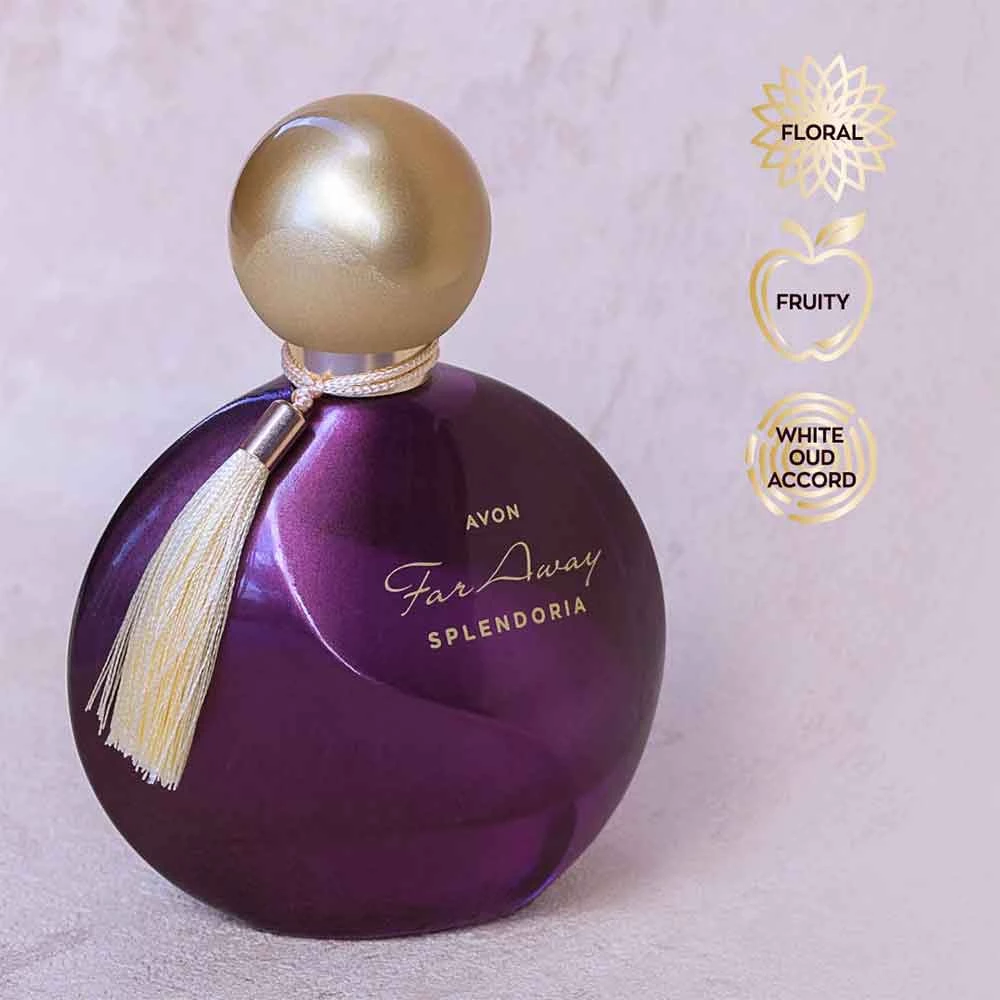 Journey to the mecca of perfumery and immerse yourself in absolute glamour or the floral, fruity and woody perfume of Far Away Splendoria Eau de Parfum, from your No.1 fragrance brand. Immerse yourself in sheer luxury, inspired by the Middle East, with luminous plum, rich gardenia-infused white oud accord and dreamy vanilla.