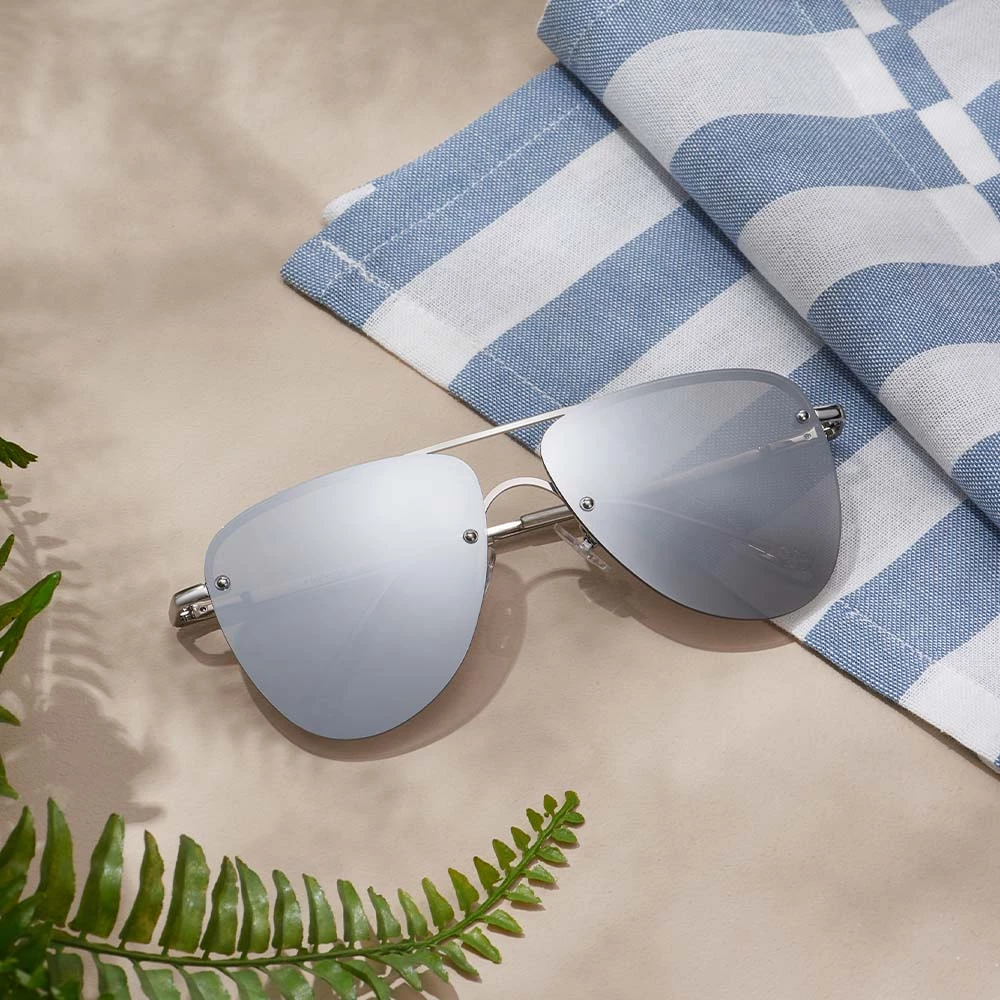 Add a touch of timeless style to your summer outfit with a pair of ever on-trend French Connection Aviator Sunglasses. You’ll love the mirrored lenses and slim metal frame.