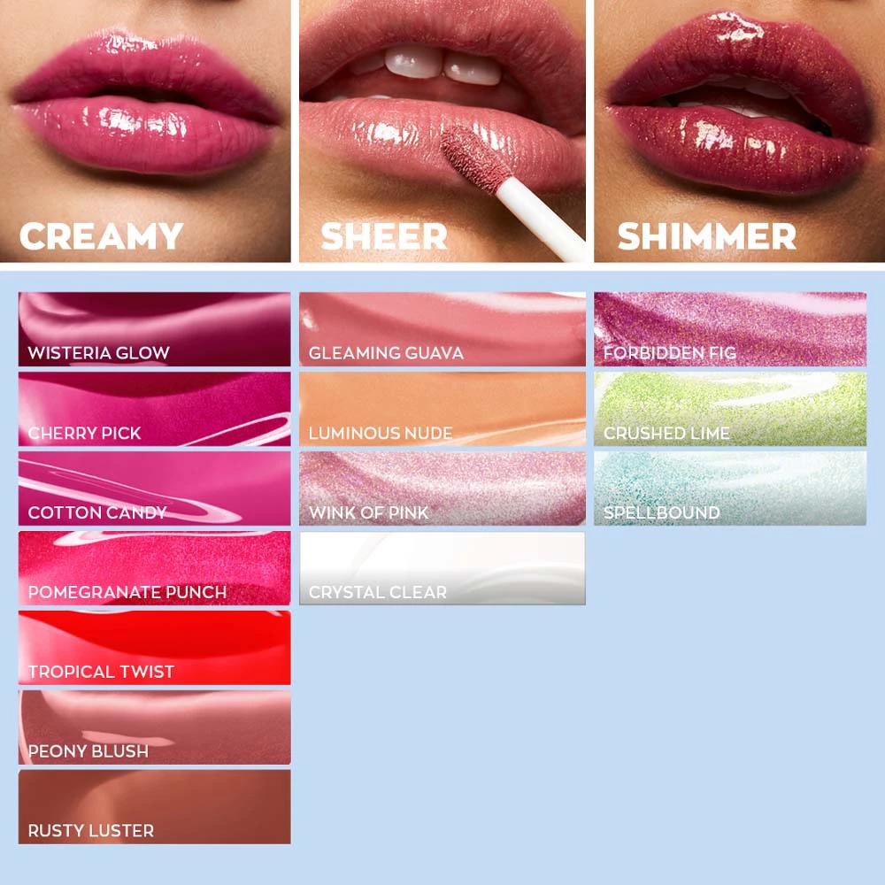 Choose from 3 ultra-juicy finishes and swipe on for endless lip nourishment.
