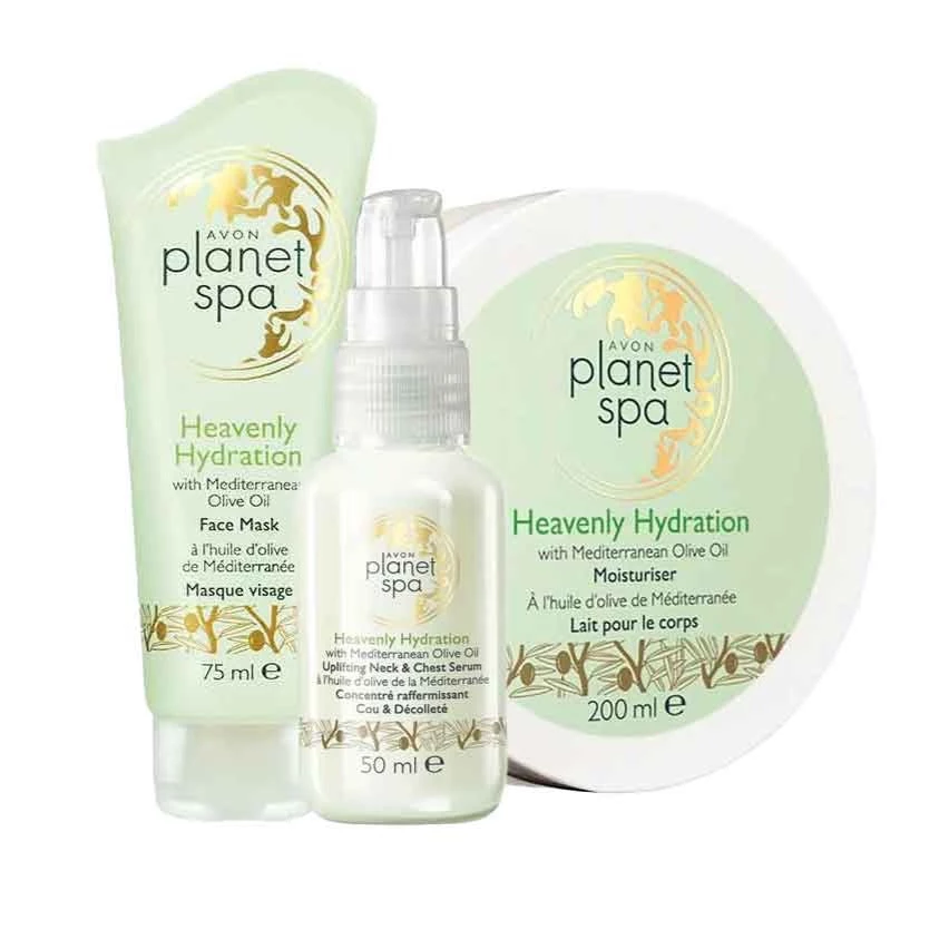 Relax and moisturise your skin with the nourishing benefits of Mediterranean olive oil. Our Heavenly Hydration Set includes a matching body moisturiser, face mask and next & chest serum.