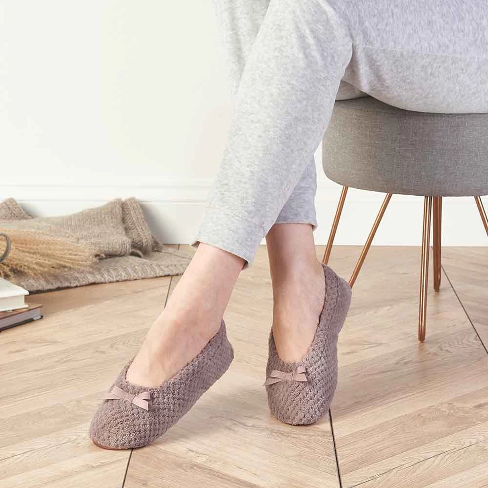 Sink your feet into the Waffle Slipper Socks, made with a gorgeous fabric and waffle-style texture for a super-soft feel and an adorable bow detail.
