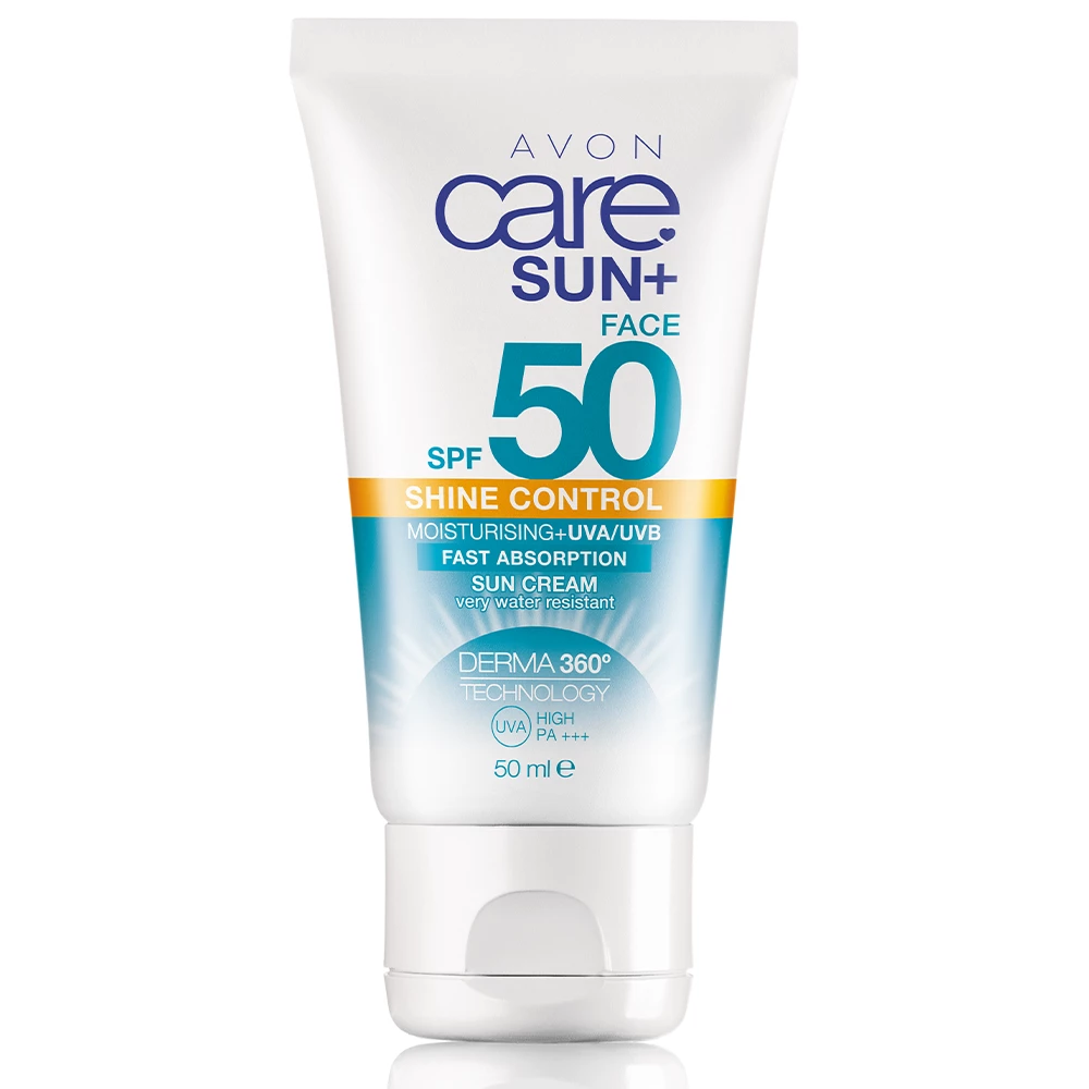 Shine no more with our Avon Care Sun Shine Control SPF50 Facial Sun Cream. This oil-free, dermatologically tested formula is very water-resistant and protects you from UV rays, leaving skin soft, smooth and mattified. So you’re in safe hands.